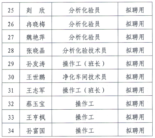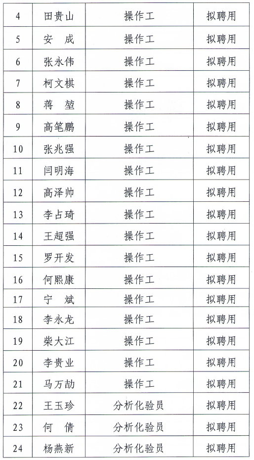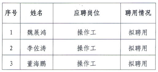 凭证《ag亚洲集团网金昌能源化工开发有限公司社会果真招聘通告》,经由宣布通告、组织报名、资格审查、笔试面试等环节,拟选聘职员34人。现将拟聘用职员名单公示如下: